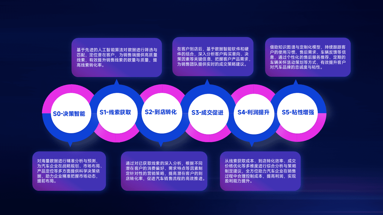 通过拓宽潜在客户来源、、优化线索分配并提高到店转化率,,以增强销售效率。。。。同时,,,利用线索数据不断优化分析模型,,,有效提升转化率,,,,扩大营销影响力。。。。